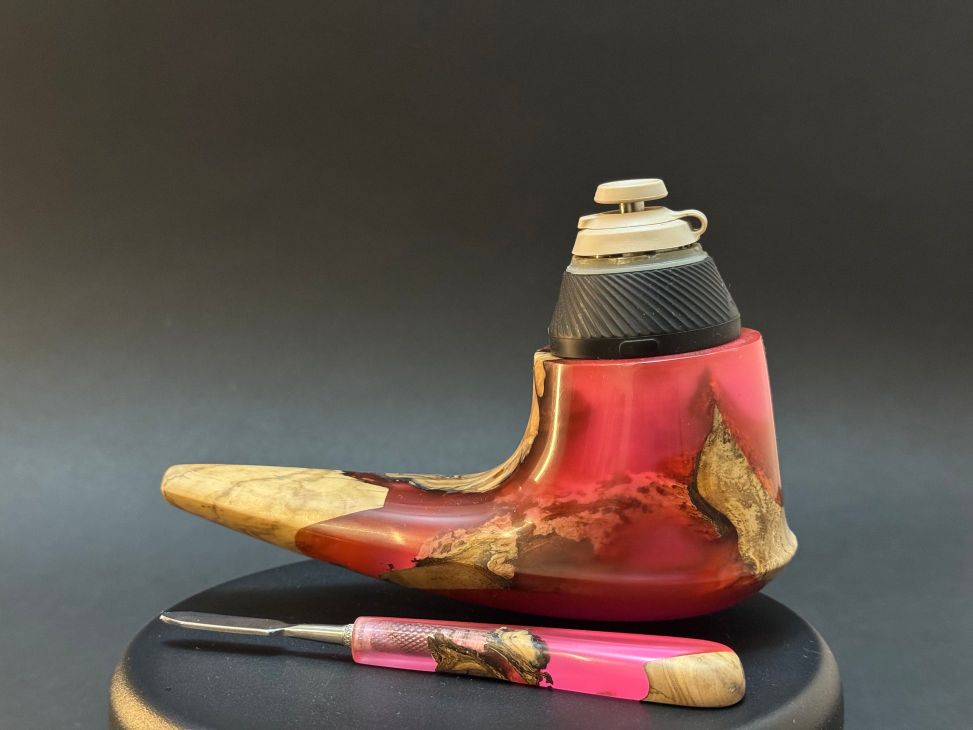 The design symbolizes a teardrop, representing both strength and delicacy. Soft pink tones, achieved through meticulous staining techniques, enhance the wood’s natural grain, creating a unique visual appeal. The ergonomic shape ensures a comfortable grip and a smooth smoking experience.