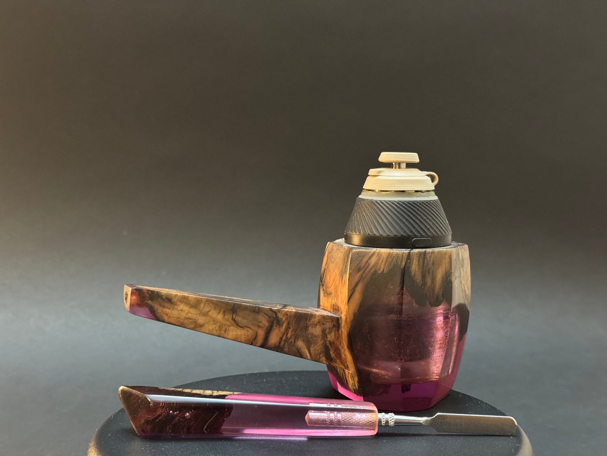 The design is inspired by the delicacy of a rose—the soft pink hues on the pipe’s surface were achieved through a special staining technique that enhances the natural wood grain. Its crystalline shape not only adds aesthetic value but also ensures exceptional comfort during use.